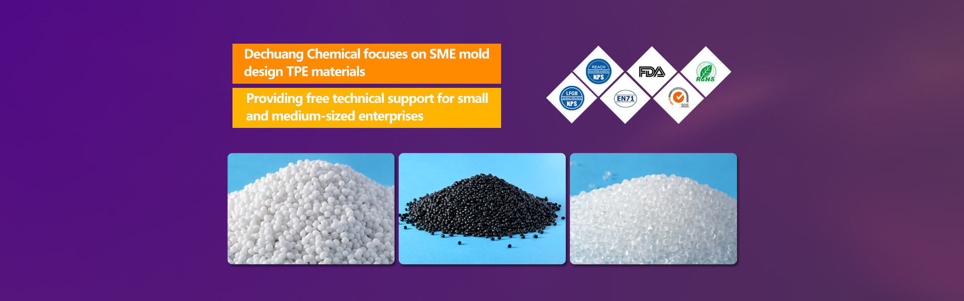 For 10 years, Dechuang Chemical has been focusing on the R&D and production of rubber and plastic materials. It is a high-tech modern enterprise specializing in R&D, production and promotion of TPE rubber and plastic materials, TPE rubber and plastic materials and other polymer functional materials. Long-term cooperation with Kraton, Kuraray, Taiwan Rubber BASF, Yueyang Petrochemical and many other well-known domestic and foreign manufacturers.